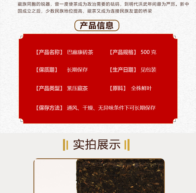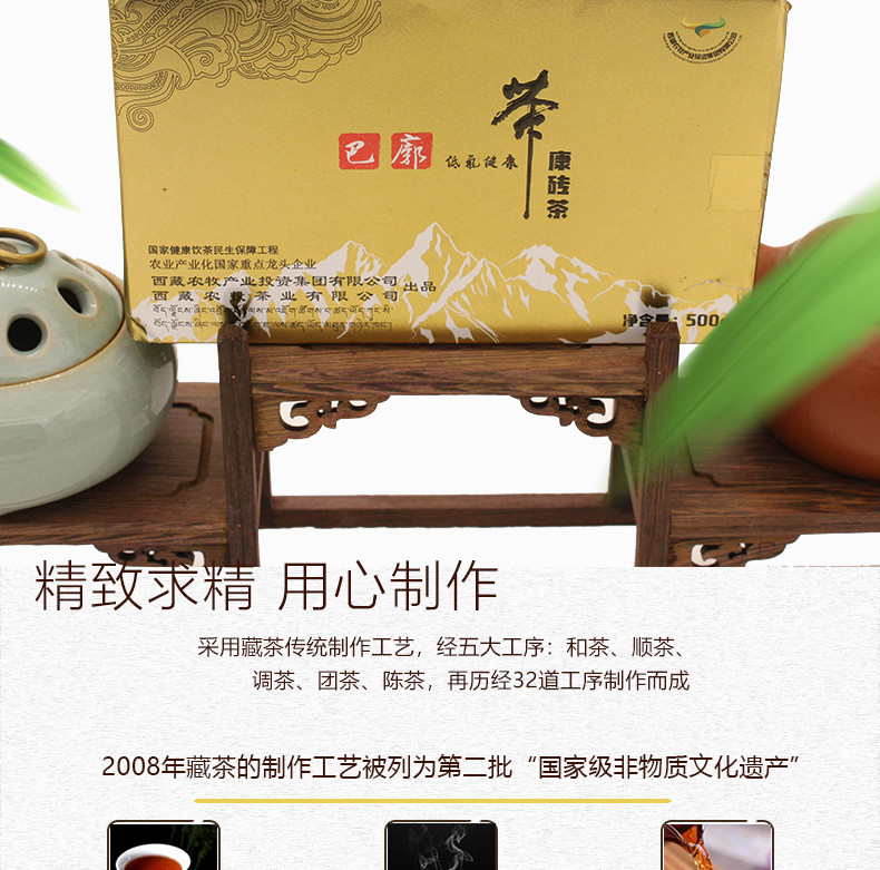 商品名称:特制藏茶-巴廊砖茶500g/盒