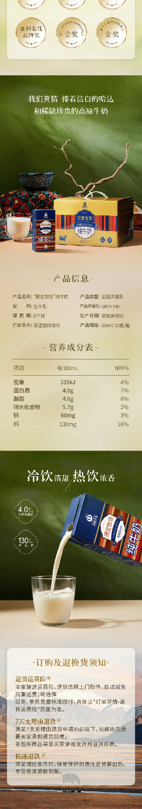 商品名称:高原之宝高原限定牧场纯牛奶200ml*10盒/箱