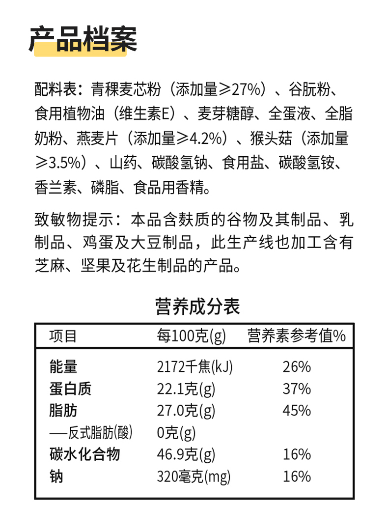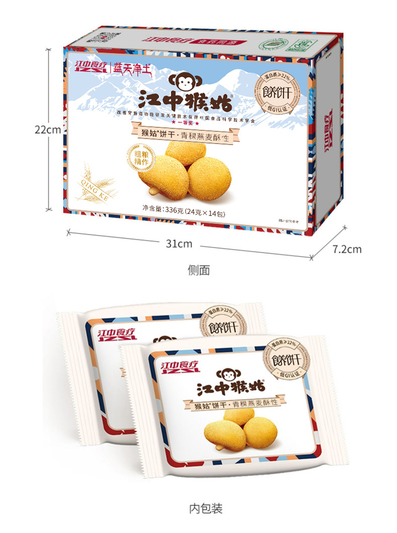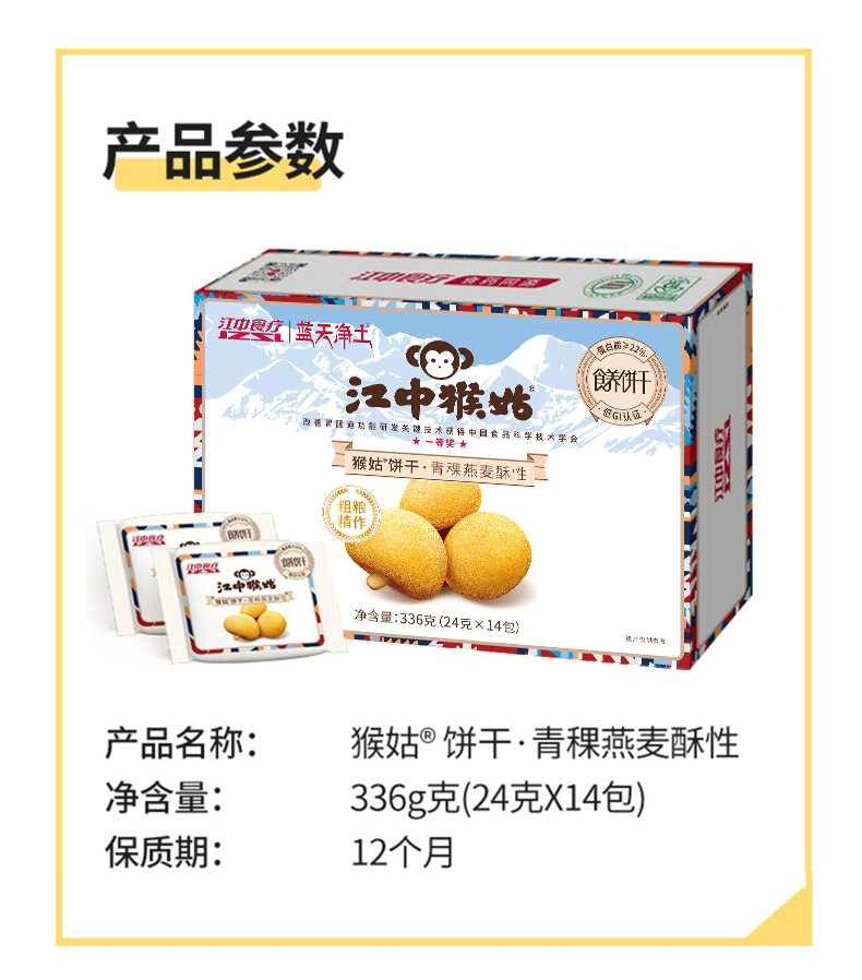 商品名称:江中猴姑青稞燕麦饼干336g(蓝天净土联名款)