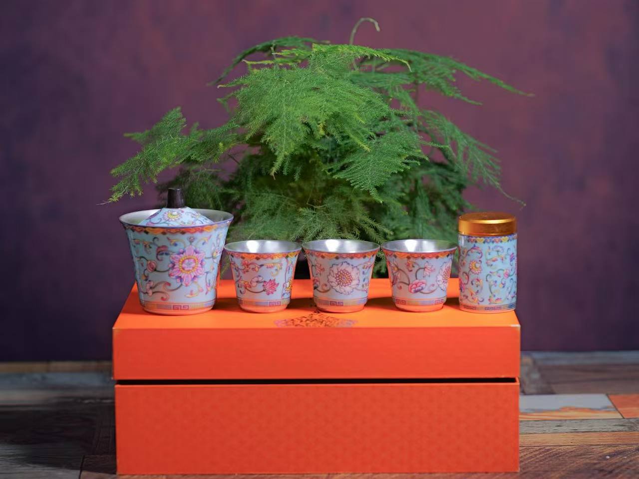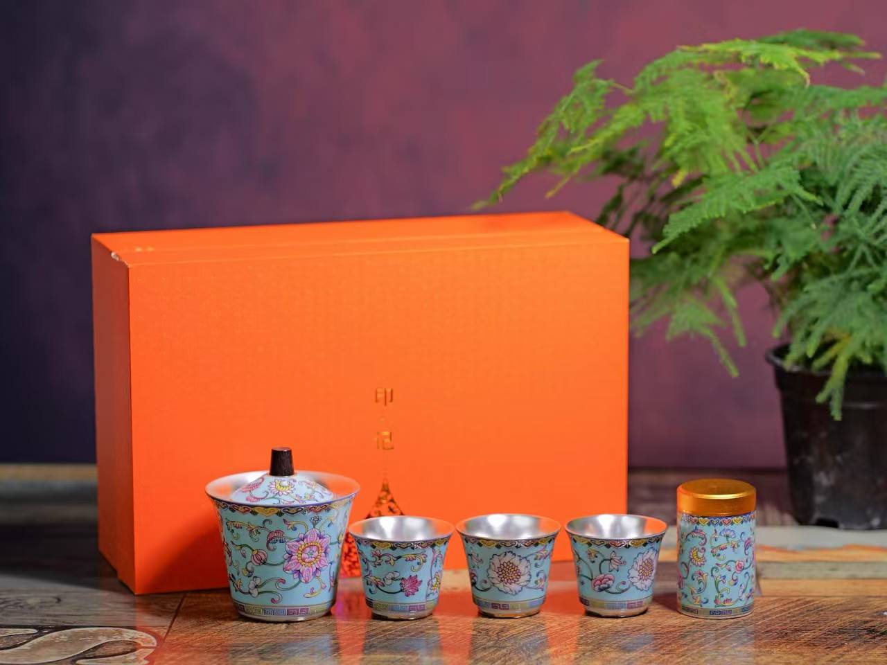 藏式纯银陶瓷茶具